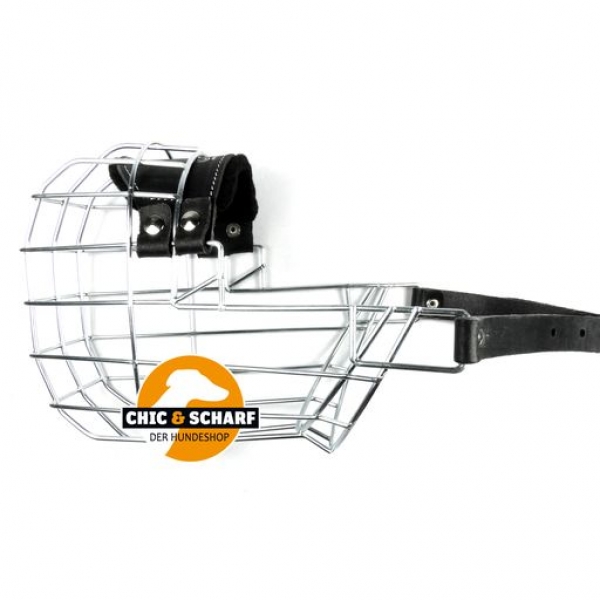 Verzinkter Chopo Drahtmaulkorb mit schwarzen Lederriemen und Filz unterlegtem Nasenpolster