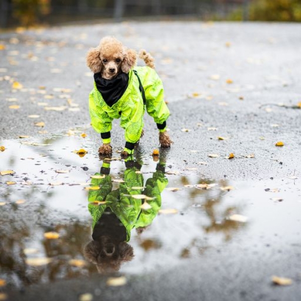 Der PAIKKA Regenanzug ist einfach anzuziehen. Kein Schwitzen mehr, bevor du deinen Hund überhaupt aus der Tür gebracht hast. Dein Hund ist im Handumdrehen angezogen und bereit, sich dem schlechten Wetter zu stellen. Wasserdichter Stoff hält deinen Vierbeiner beim Spaziergang trocken.