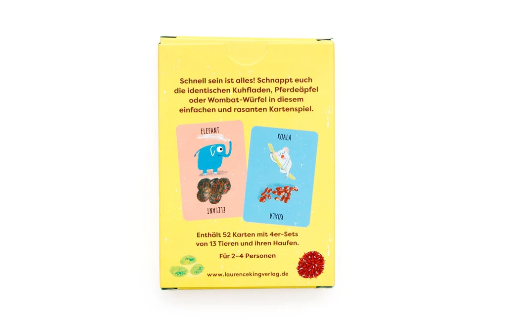 Das Kartenspiel besteht aus 52 Karten, aufgeteilt in 4er-Sets mit 13 verschiedenen Tieren und ihren passenden Haufen. Gespielt wird mit 2–4 Spieler*innen.