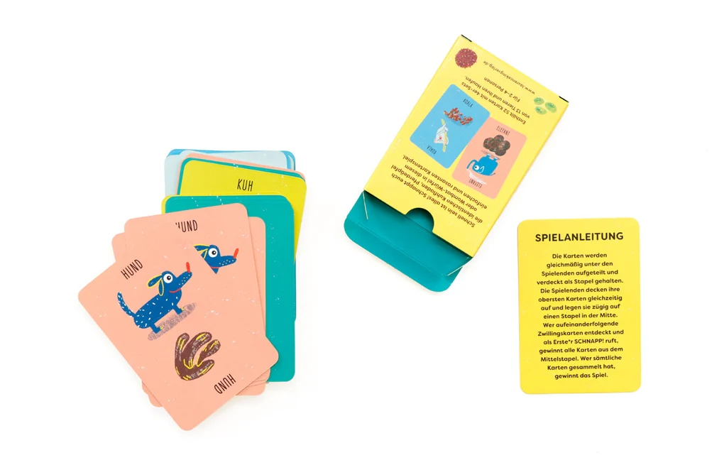 Sobald zwei identische Karten (ein Tier oder ein Haufen) offen ausliegen, heißt es schnell reagieren: Wer als Erste*r „Schnapp!“ ruft, gewinnt den gesamten Mittelstapel und legt ihn verdeckt unter den eigenen Kartenstapel.