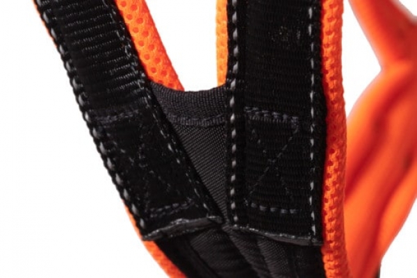 Bei moderatem Zug muss das X unserer Geschirre nicht komplett stramm anliegen, das ist aus o.g. Gründen kein Mangel. Trotzdem dämpft das X im Gegensatz zu Geschirren der offenen Form die Wirbelsäule in der Bewegung – dafür ist es ja da.