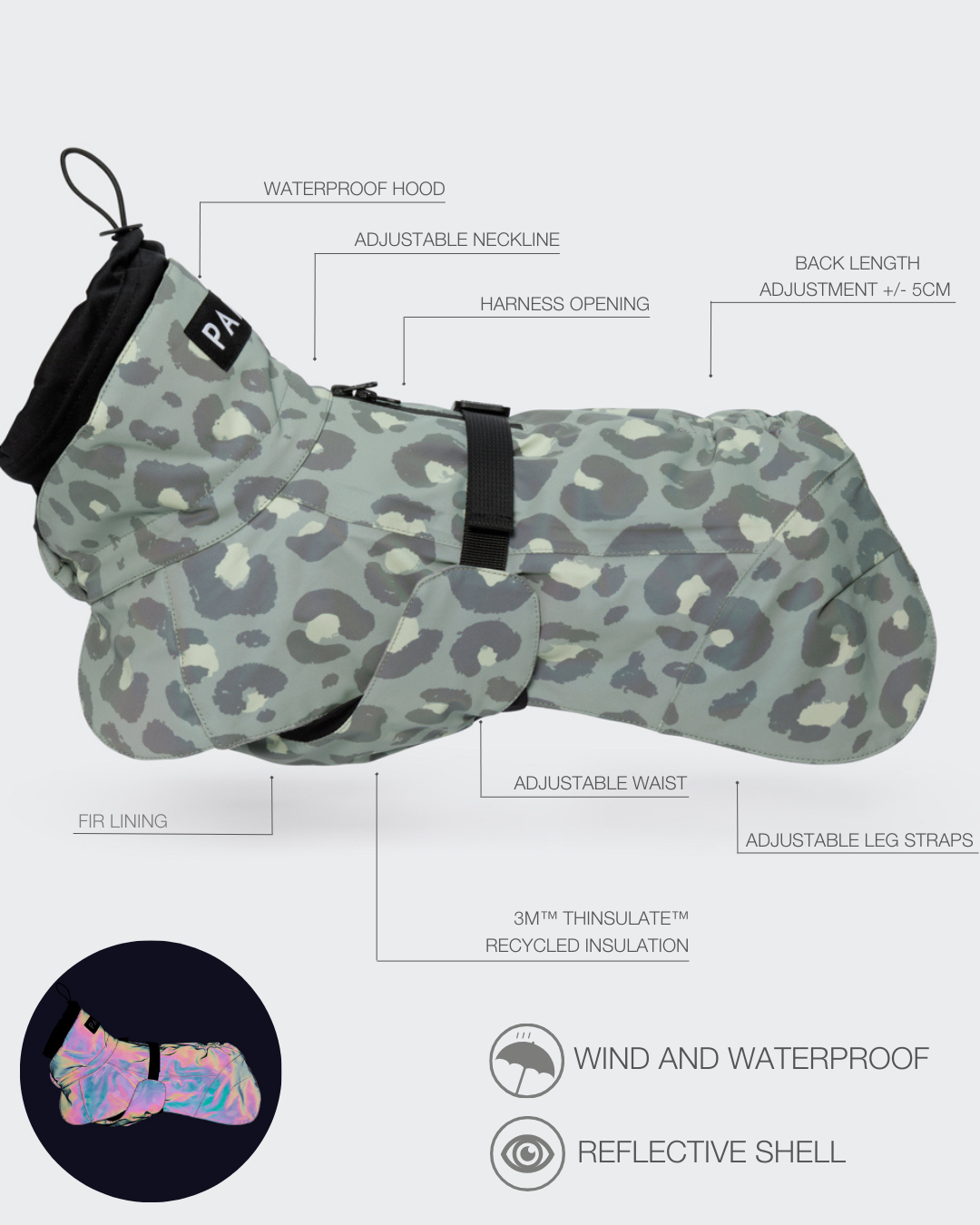 Die leichte 3M™ Thinsulate™-Isolierung sorgt für angenehme Wärme, ohne den Hund in seiner Bewegungsfreiheit einzuschränken. Gleichzeitig unterstützt das spezielle Innenfutter eine gleichmäßige Wärmeverteilung. Mehrere Verstellmöglichkeiten ermöglichen eine individuelle Passform.