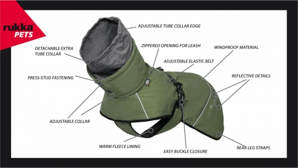 Ein hochwertiges Kleidungsstück, das den Hund bei wechselnden Wetterbedingungen im Freien schützt. Der Warmup Coat hält den Hund vor und nach dem Training warm. Sein leichtes Außenmaterial ist mit einer wasser- und winddichten Membran laminiert. Seine spezielle Wattierung ist weich und durchlässig und isoliert daher besser als Standardwatte. Das weiche Fleece-Futter sorgt für einen angenehmen Tragekomfort und die Oberflächenstruktur hält die Temperatur unter dem Mantel im Gleichgewicht. Ein toller Schnitt, ein gut abdeckender Saum und ein hoher Kragen, der den Hund vor Wind schützt. Der Kragen kann von vorne geöffnet und umgeschlagen werden, was auch das Anziehen des Mantels erleichtert. Als Besonderheit gibt es einen abnehmbaren zusätzlichen Trikot-Schlauchkragen, der den Hals warm hält. Dieser weiche innere Trikotschlauchkragen kann hochgeklappt werden, um die Ohren des Hundes vor Wind und Schmutz zu schützen. Der Mantel lässt sich schnell an- und ausziehen. Der Zwei-Wege-Reißverschluss auf der Rückseite ist wasserdicht und kann so eingestellt werden, dass eine Öffnung für verschiedene Geschirrtypen entsteht. Die hinteren Beingurte sorgen dafür, dass der Mantel unter allen Bedingungen an Ort und Stelle bleibt, auch bei Aktivitäten mit höherer Intensität. Der Mantel ist mit reflektierenden Paspeln und Aufdrucken versehen.